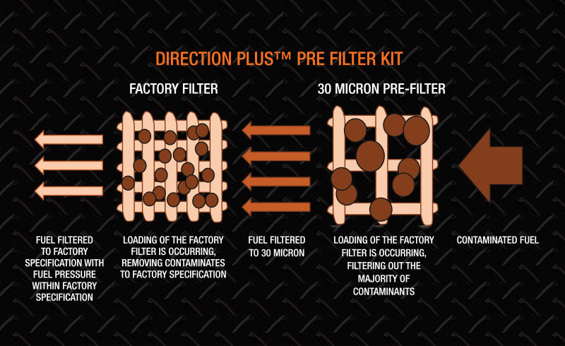 • From the humidity of Northern Queensland to the dry cool climate of South Australia and all the way down to frosty Invercargill in New Zealand, the Direction Plus Diesel Fuel Pre-Filter kit will remove water and other contaminants from our Ultra Low Sulphur Diesel (ULSD).