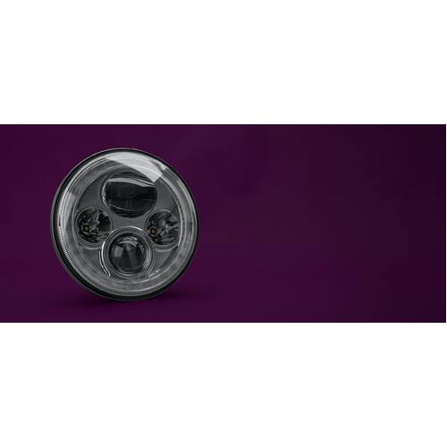 STEDI 7 Inch Iris Chrome LED Driving Lights should be the first step when improving your motorcycles' light output. Complete with High and Low beam as well as a full LED halo ring park light, the IRIS 7"  is the perfect replacement for your existing headlight.